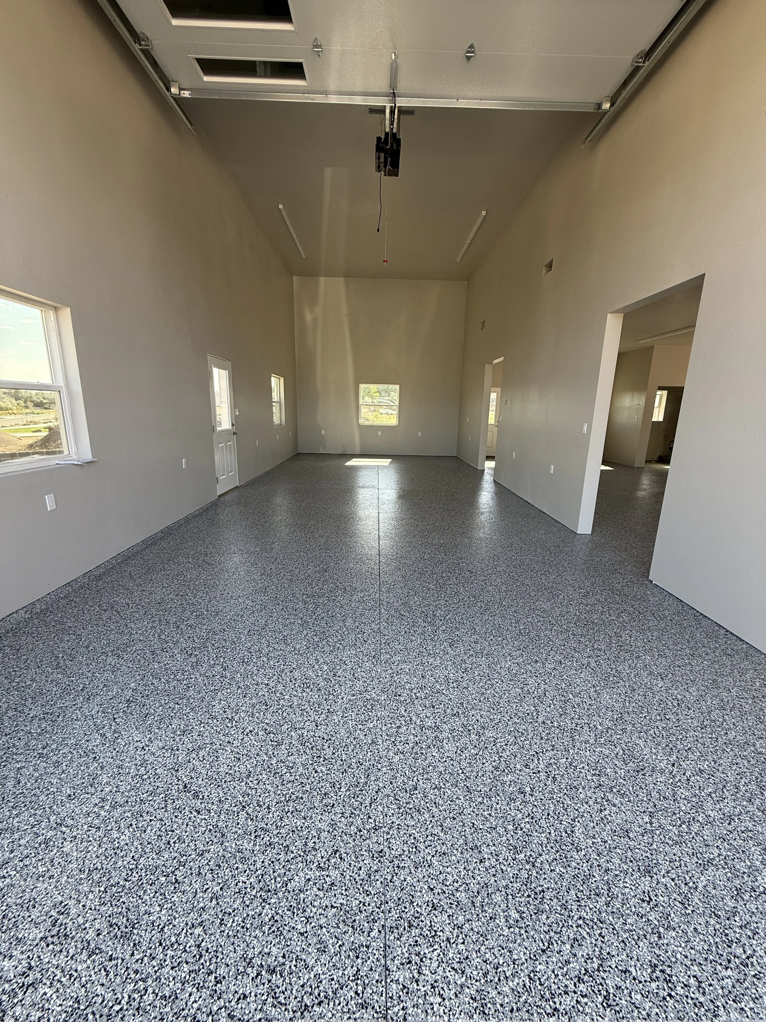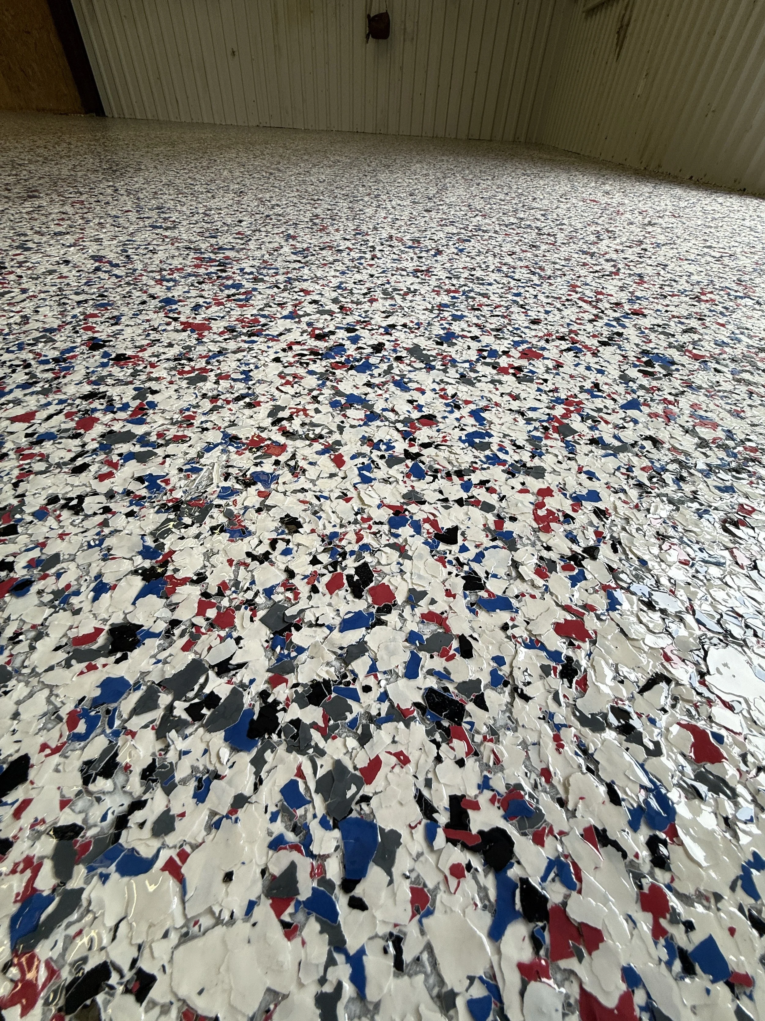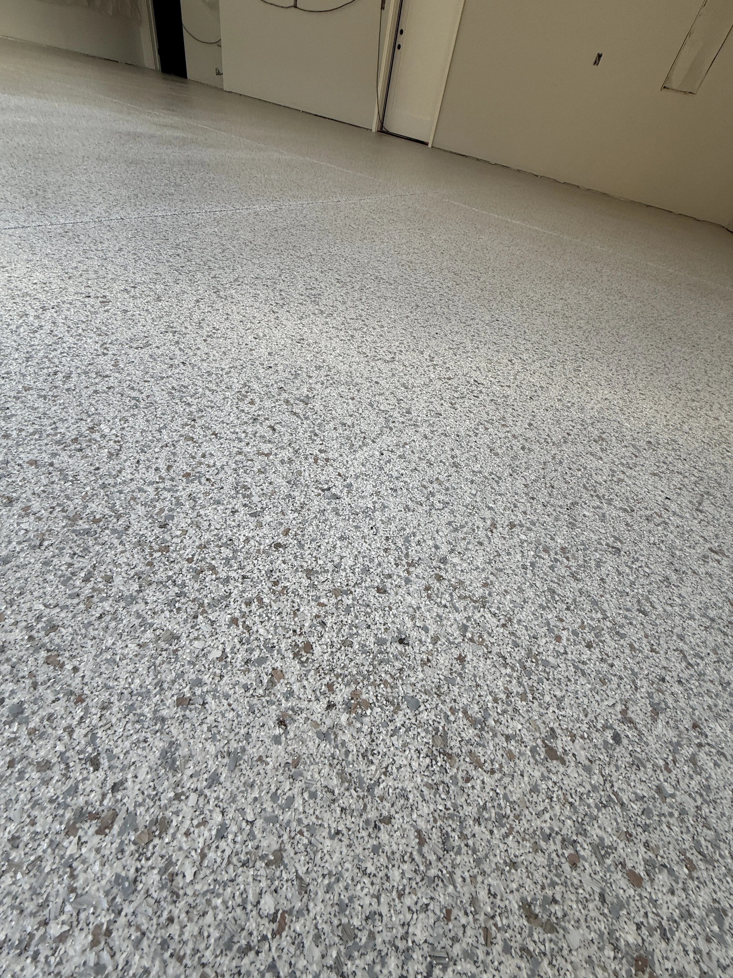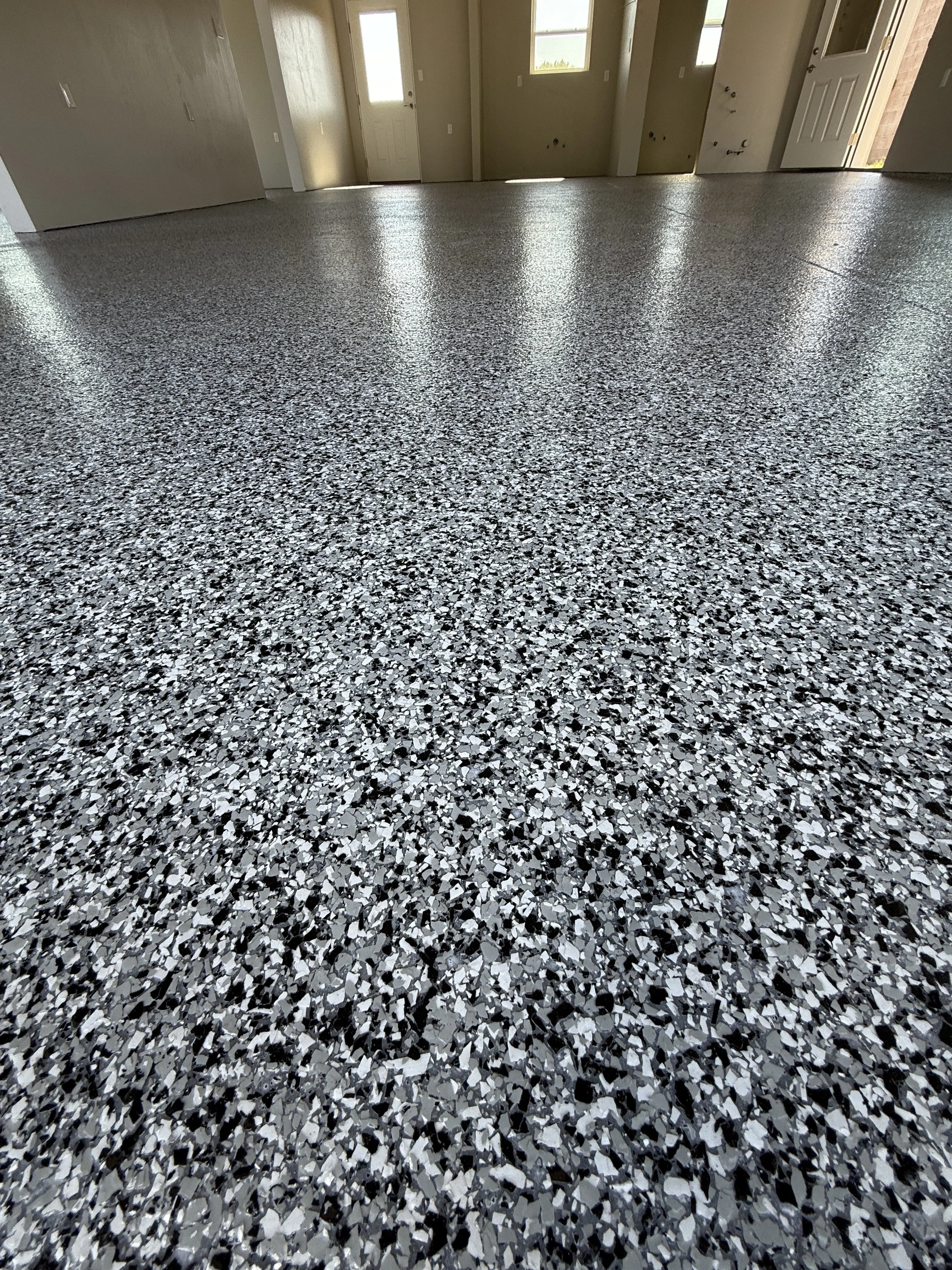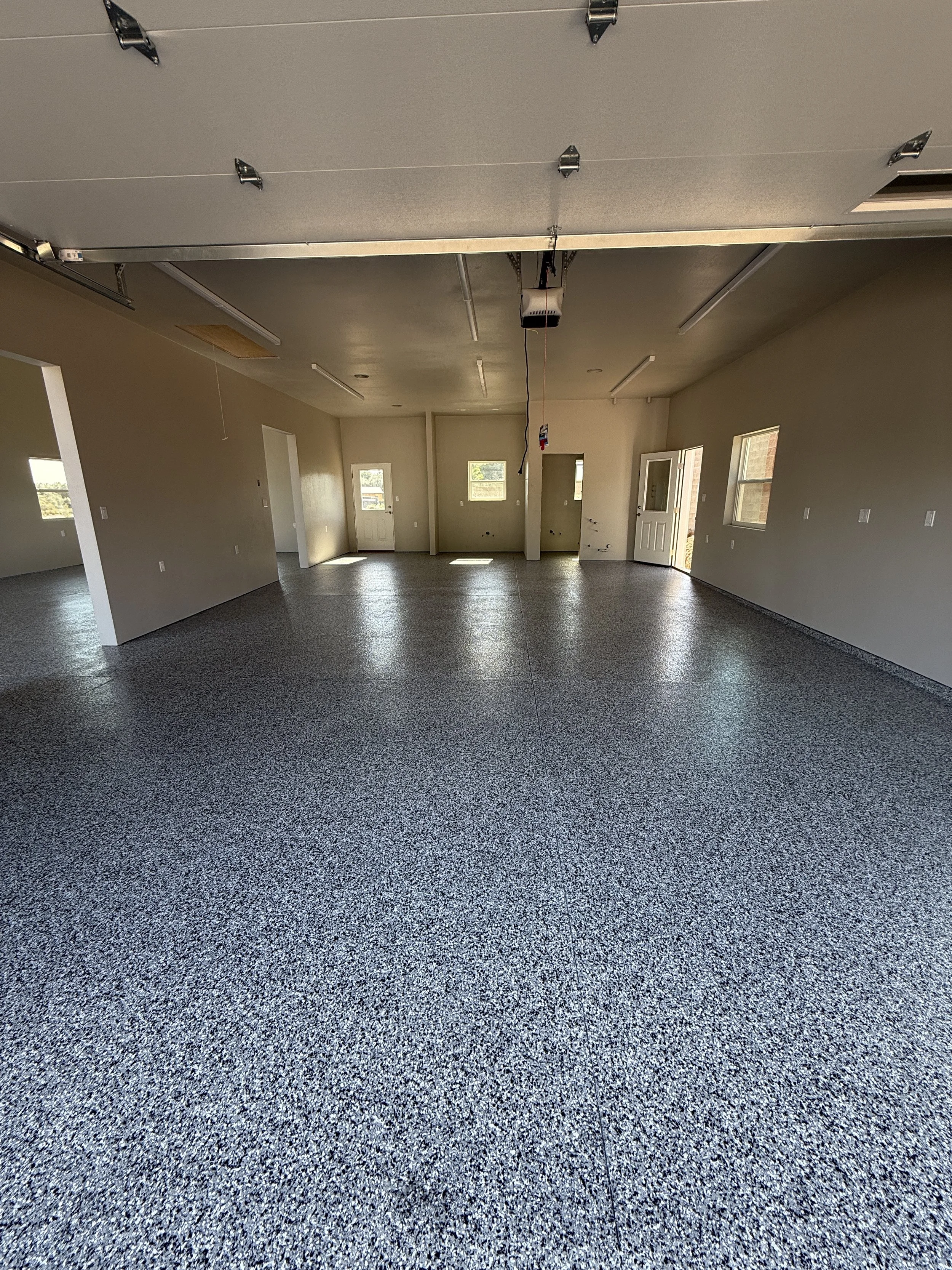 3 CAR GARAGE WE COATED WITH AN 1/8” FLAKE FOR AN AWESOMER CLIENT
