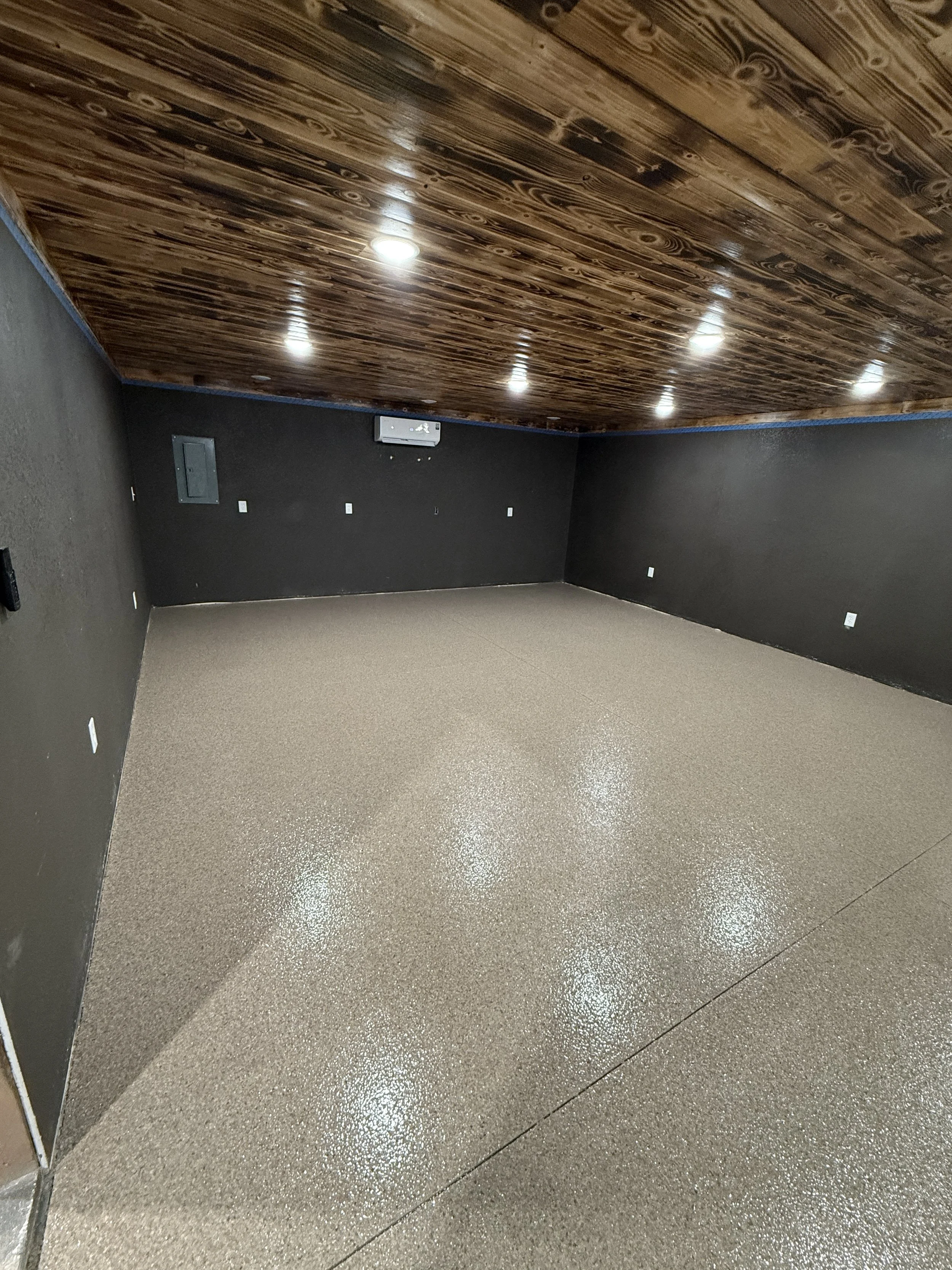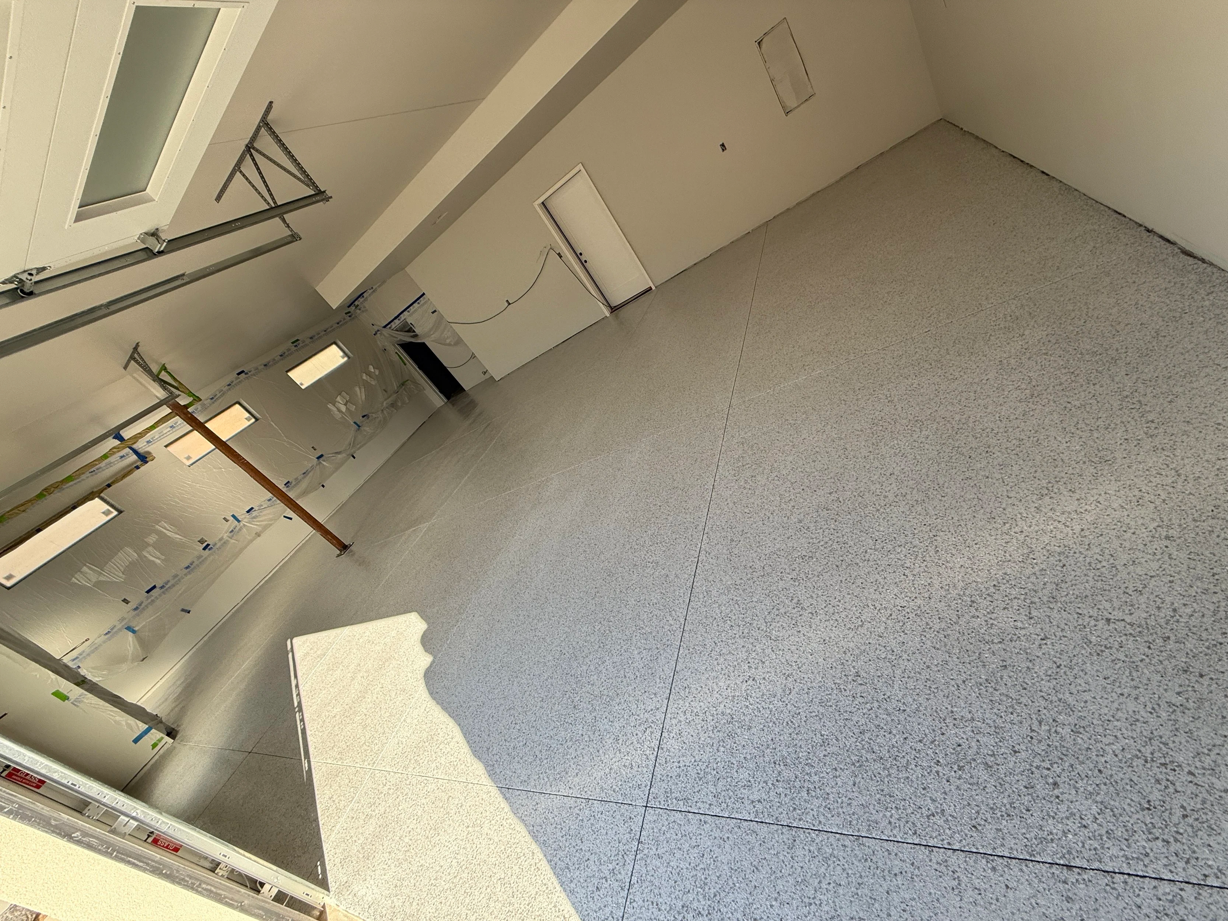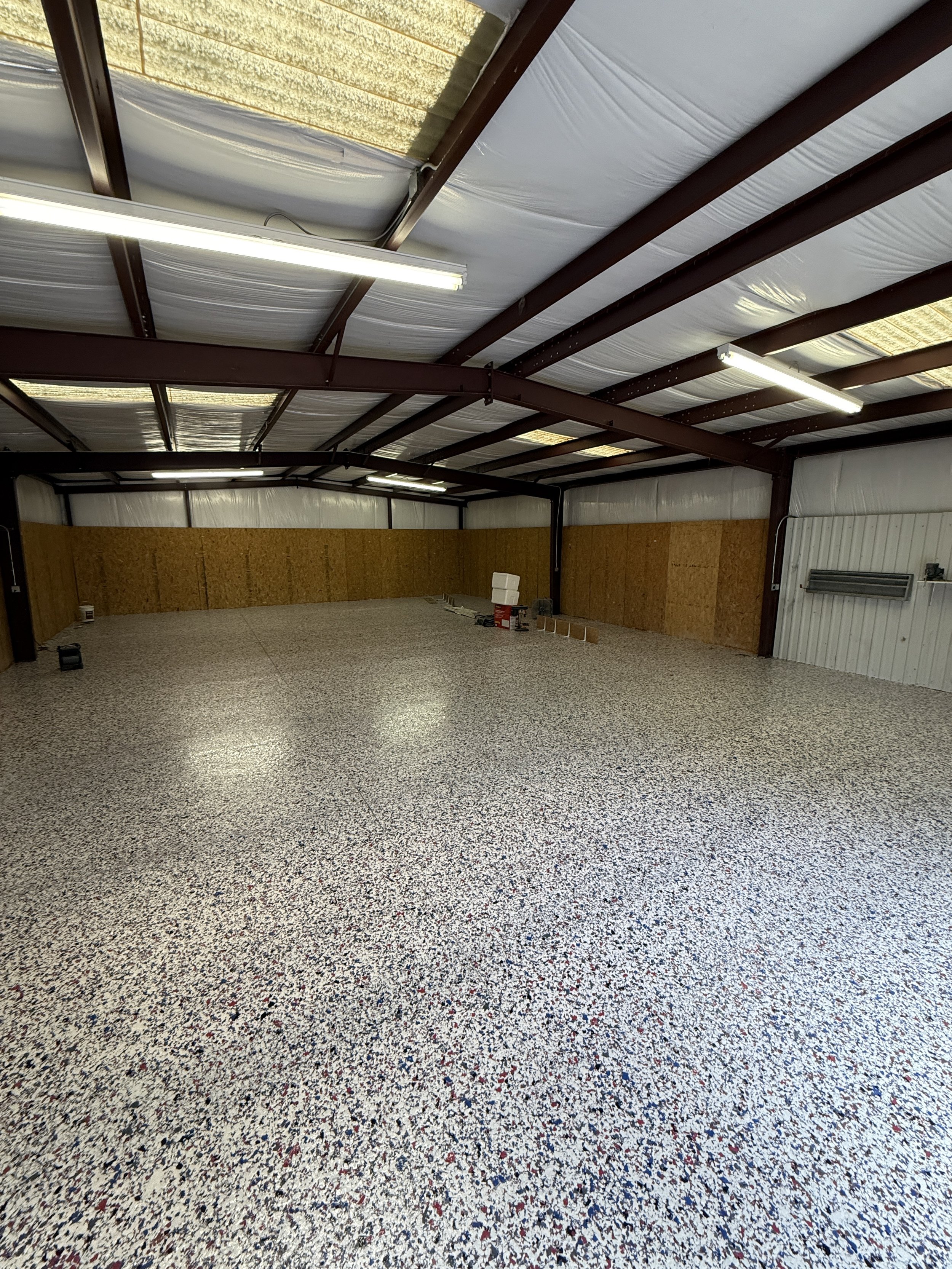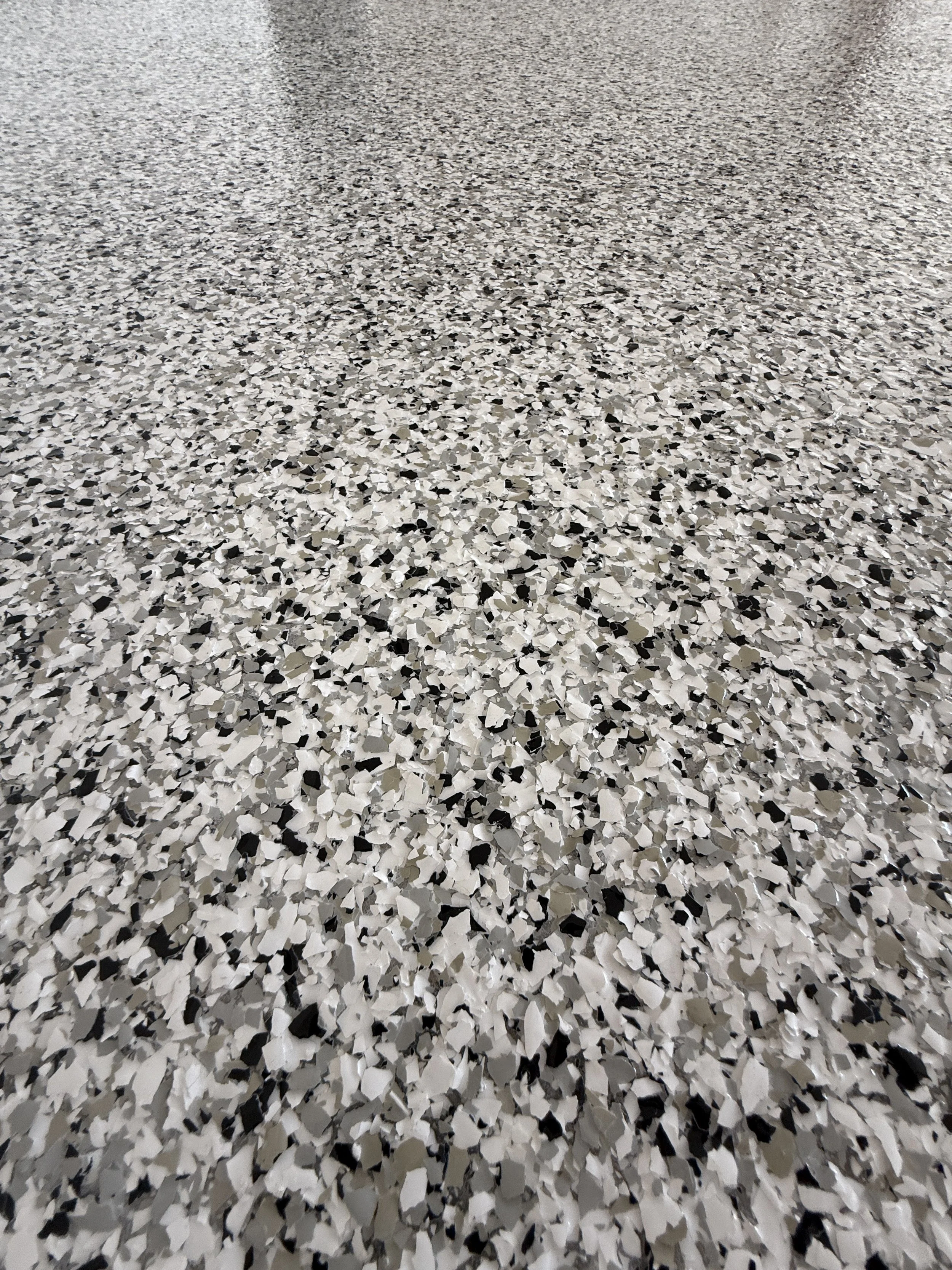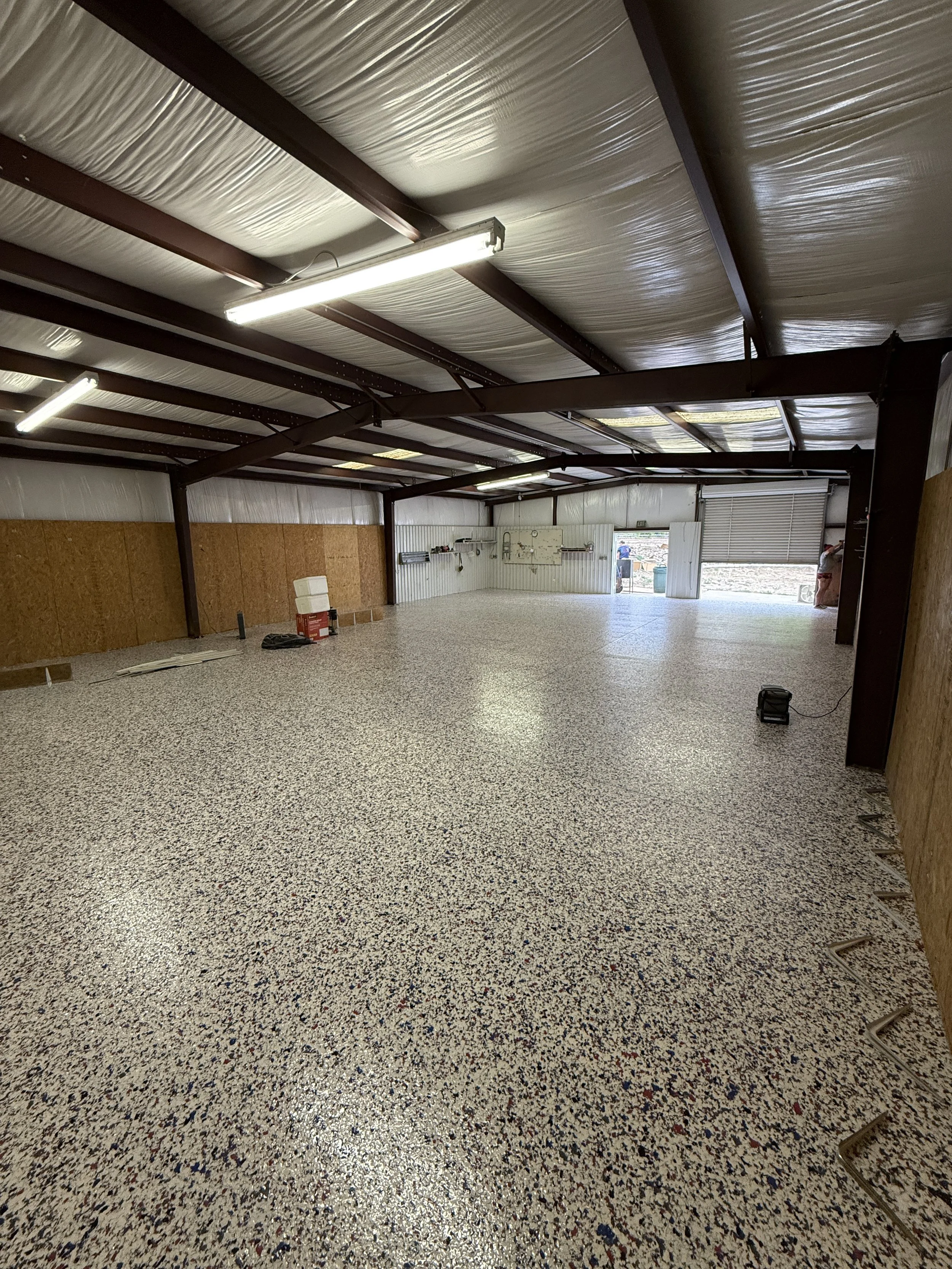 3 CAR GARAGE WE COATED WITH AN 1/8” FLAKE FOR AN AWESOMER CLIENT