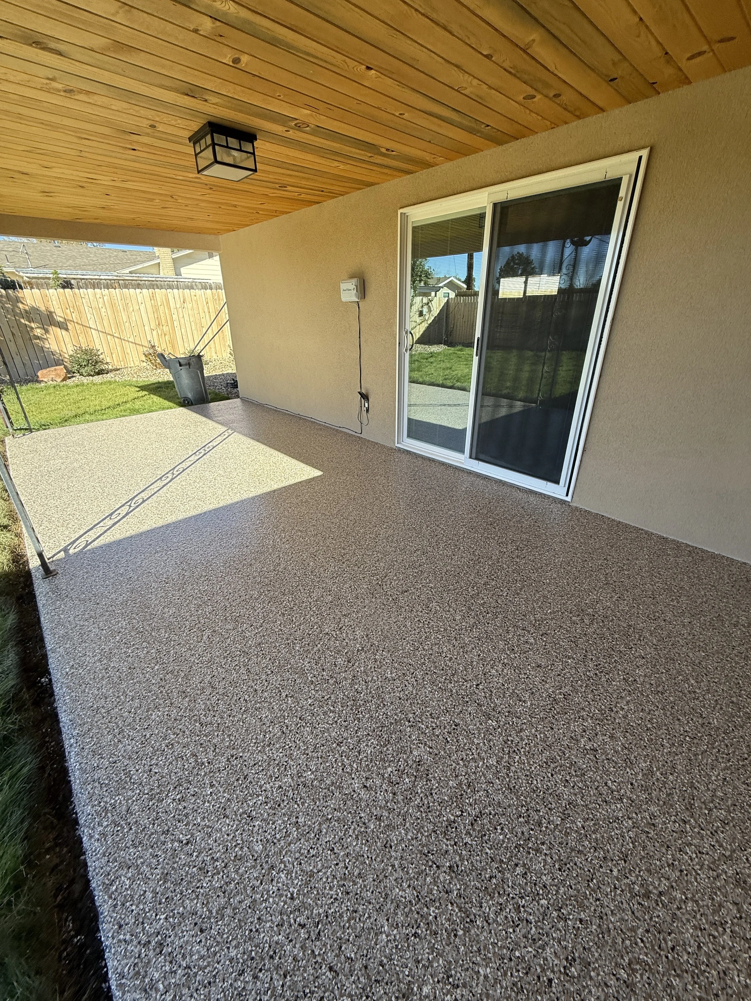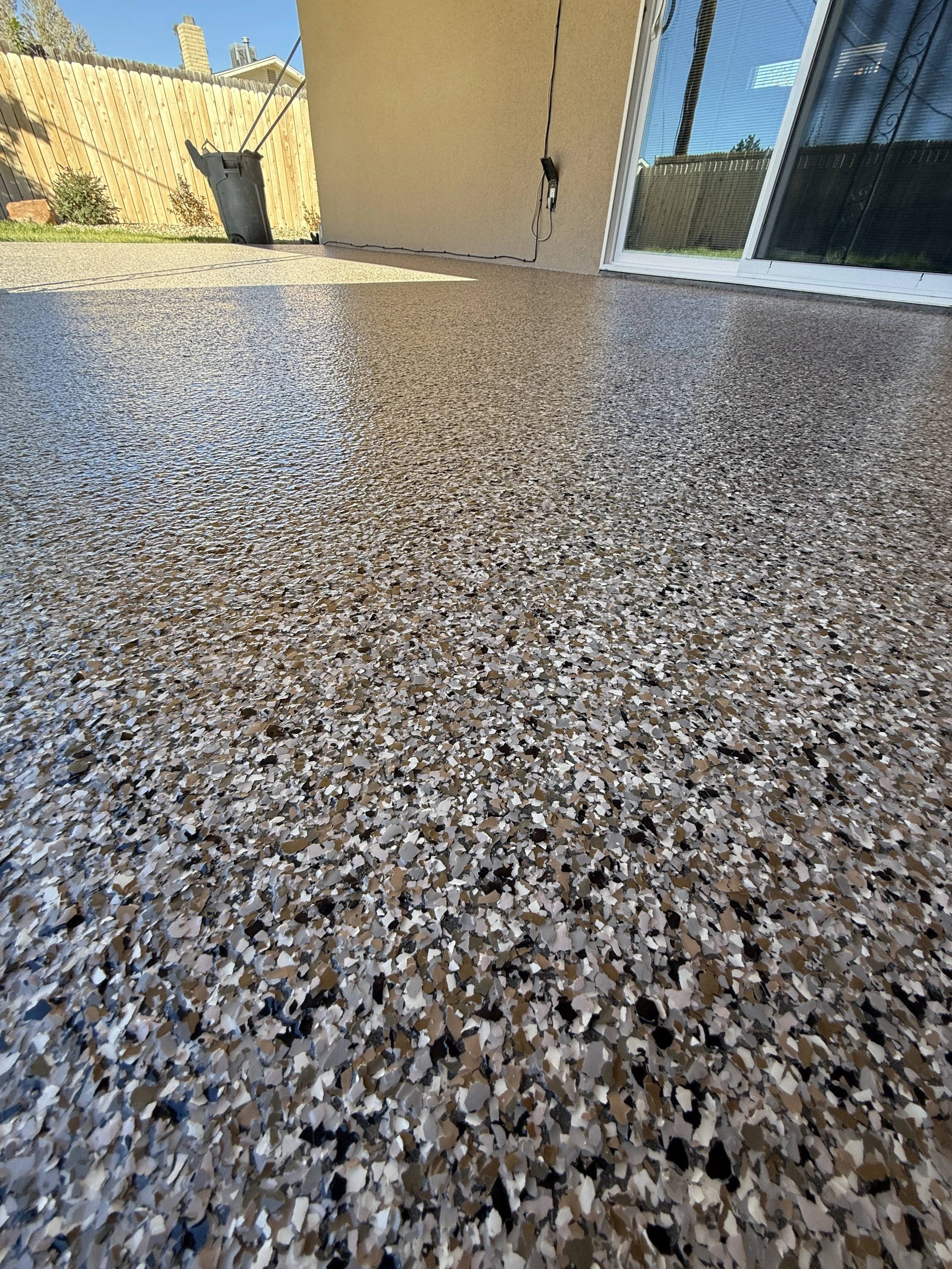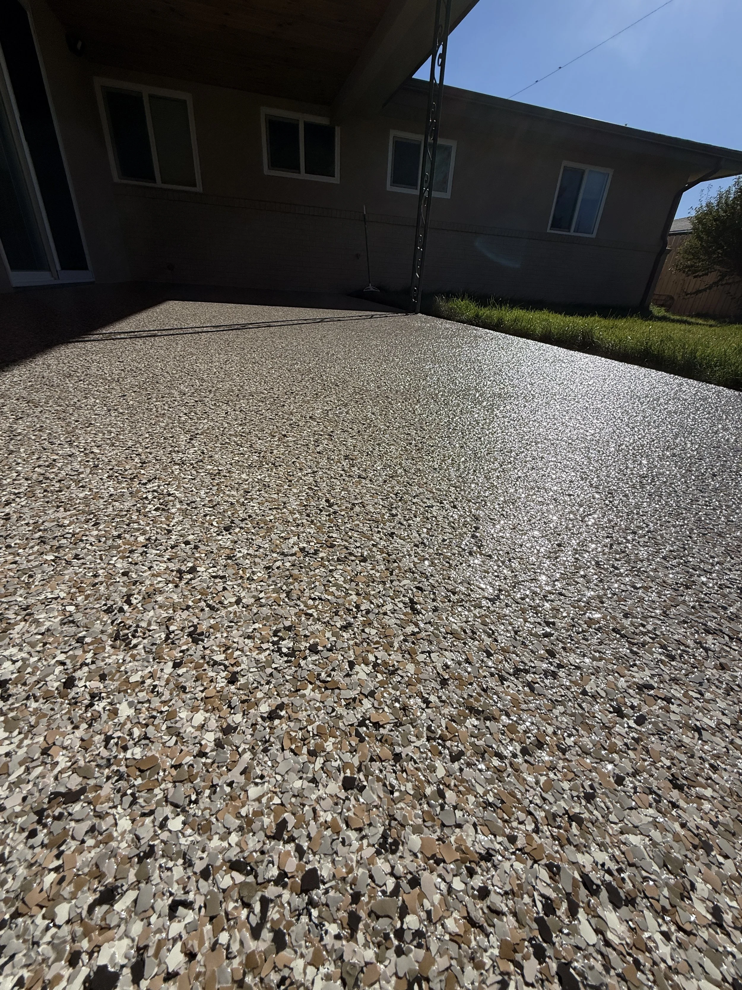 850 SQ/FT FRONT AND REAR PATIOS 1/4” WEATHERED GREY FLAKE